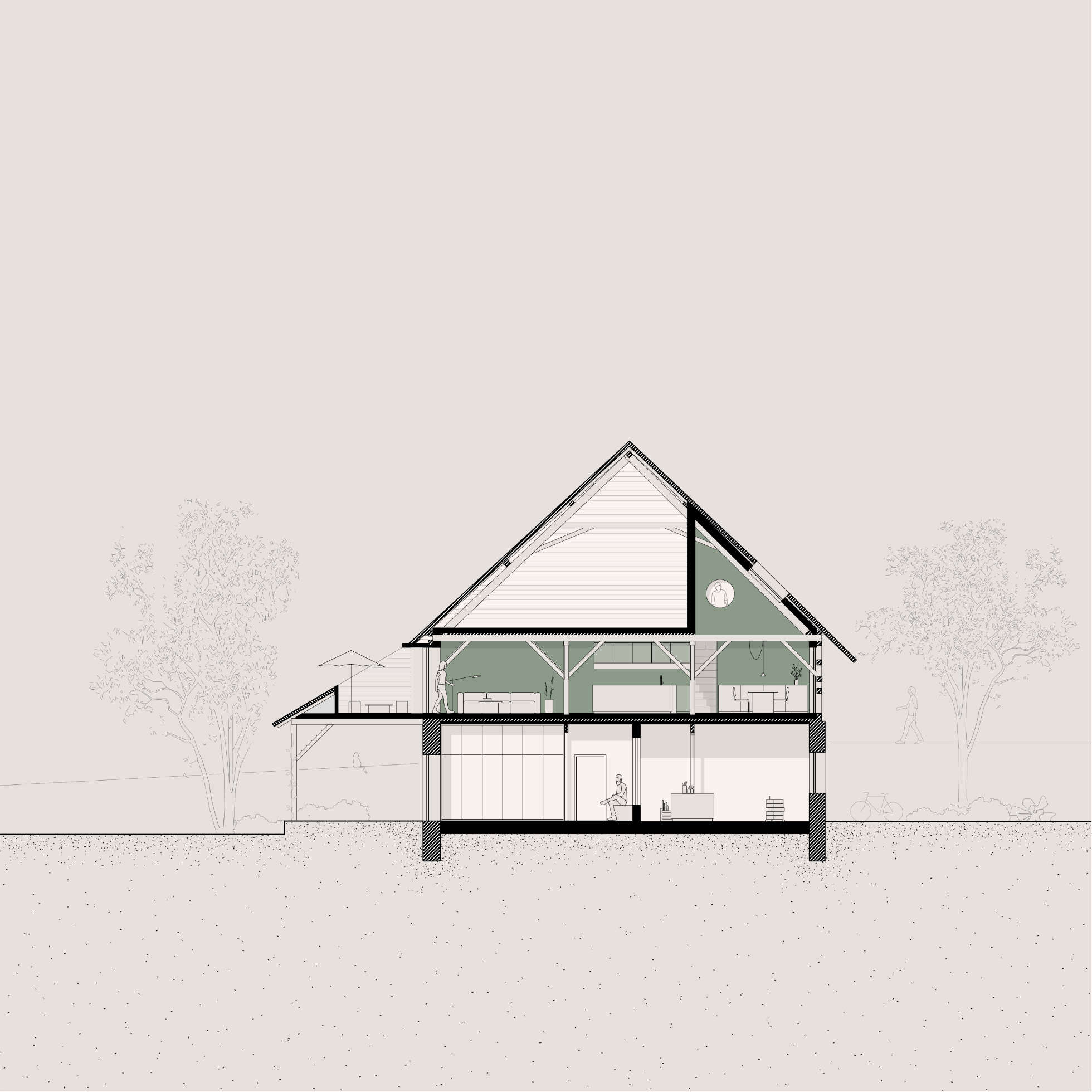 Das neue Pfarrheim definiert durch seine städtebauliche Setzung zusammen mit den Bestandsgebäuden eine neue Mitte im Ensemble der Pfarrei Mariä Himmelfahrt. Das durchlässige offene Foyer wird Auftakt zu einem neuen Ort für Austausch, Begegnung und Gemeinschaft. Das Gebäude inspiriert sich in seiner Dimensionierung und formalen Gestaltung an Bestand und Umgebung und interpretiert diese zeitgemäß in natürlicher und hochwertiger Materialität.