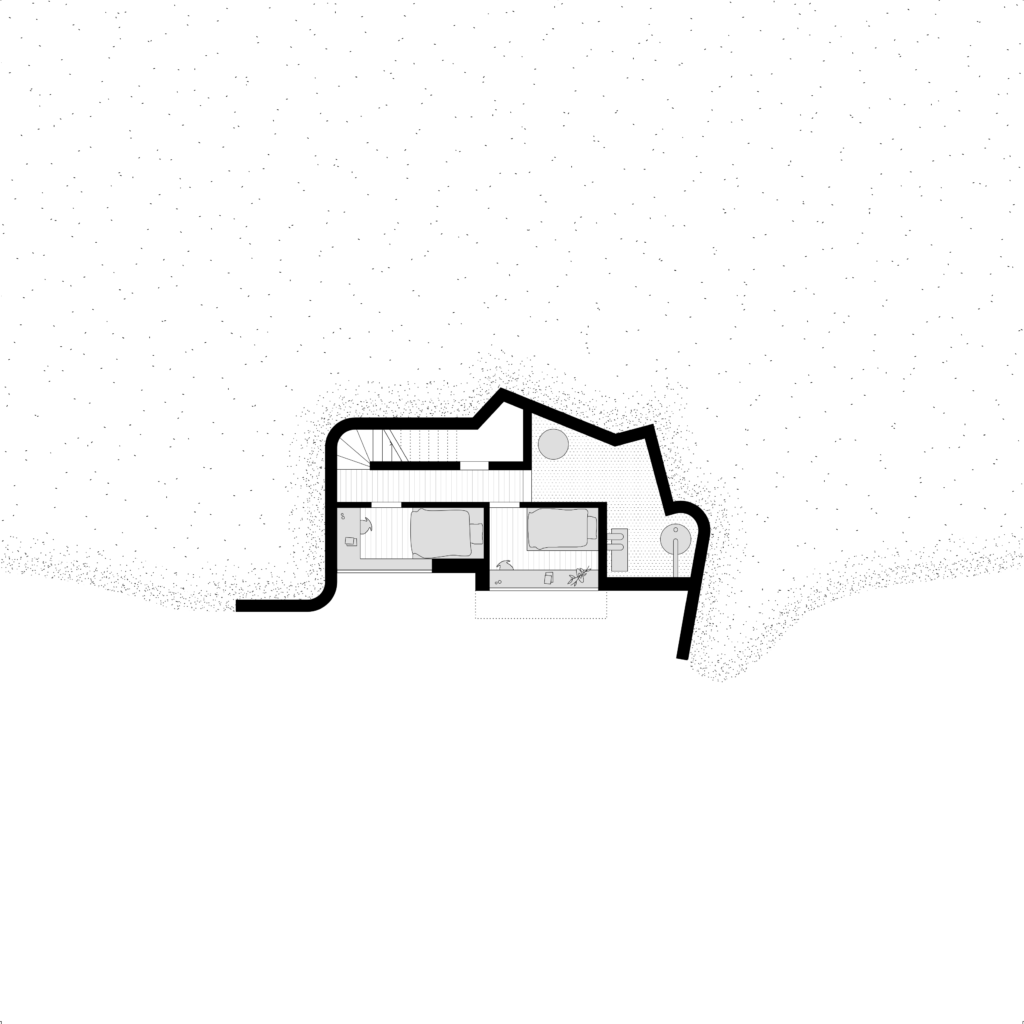 In traumhafter Lage entsteht ein Ferienhaus auf minimalstem Fußabdruck. Das betonierte Untergeschoss trägt die Obergeschosse in Massivholzbauweise. Die hölzernen Wandscheiben formen spannungsvolle Innenräume in verschiedensten Höhen und rahmen Blicke in die Umgebung.